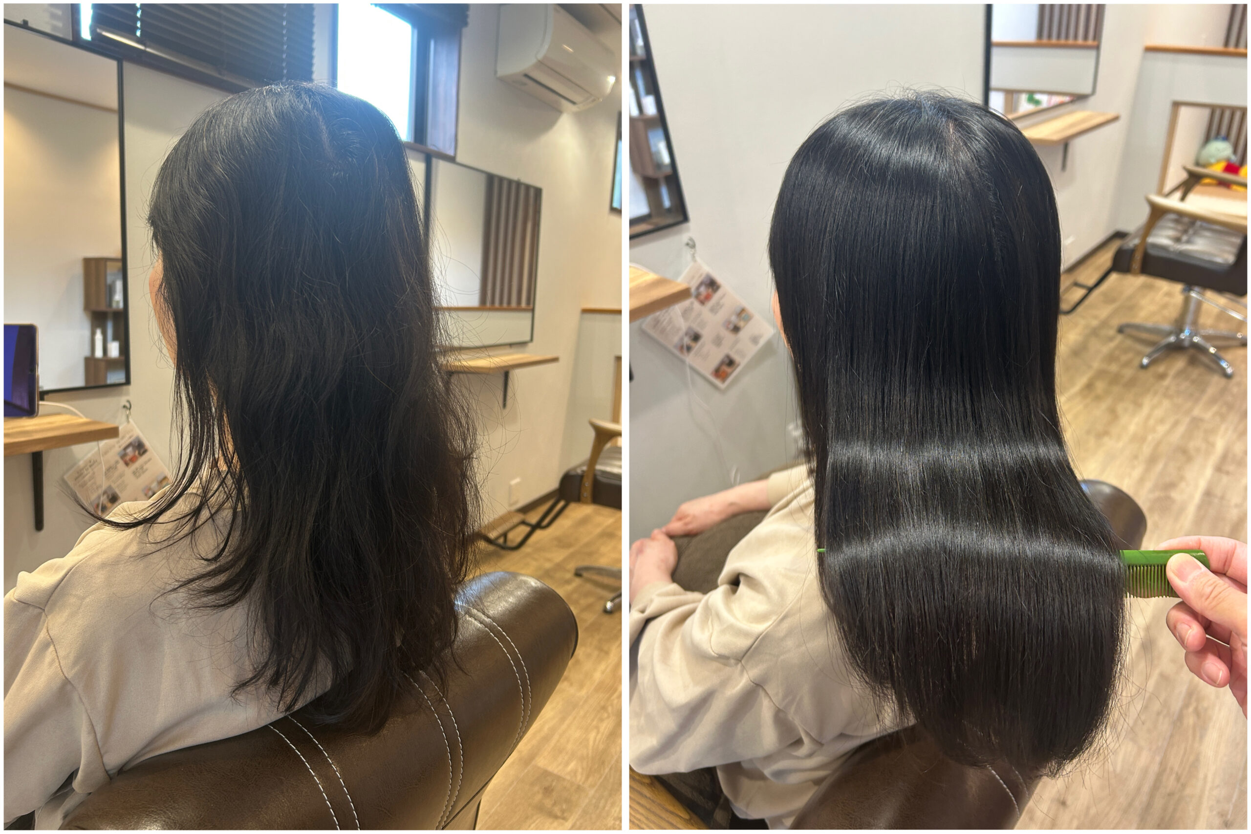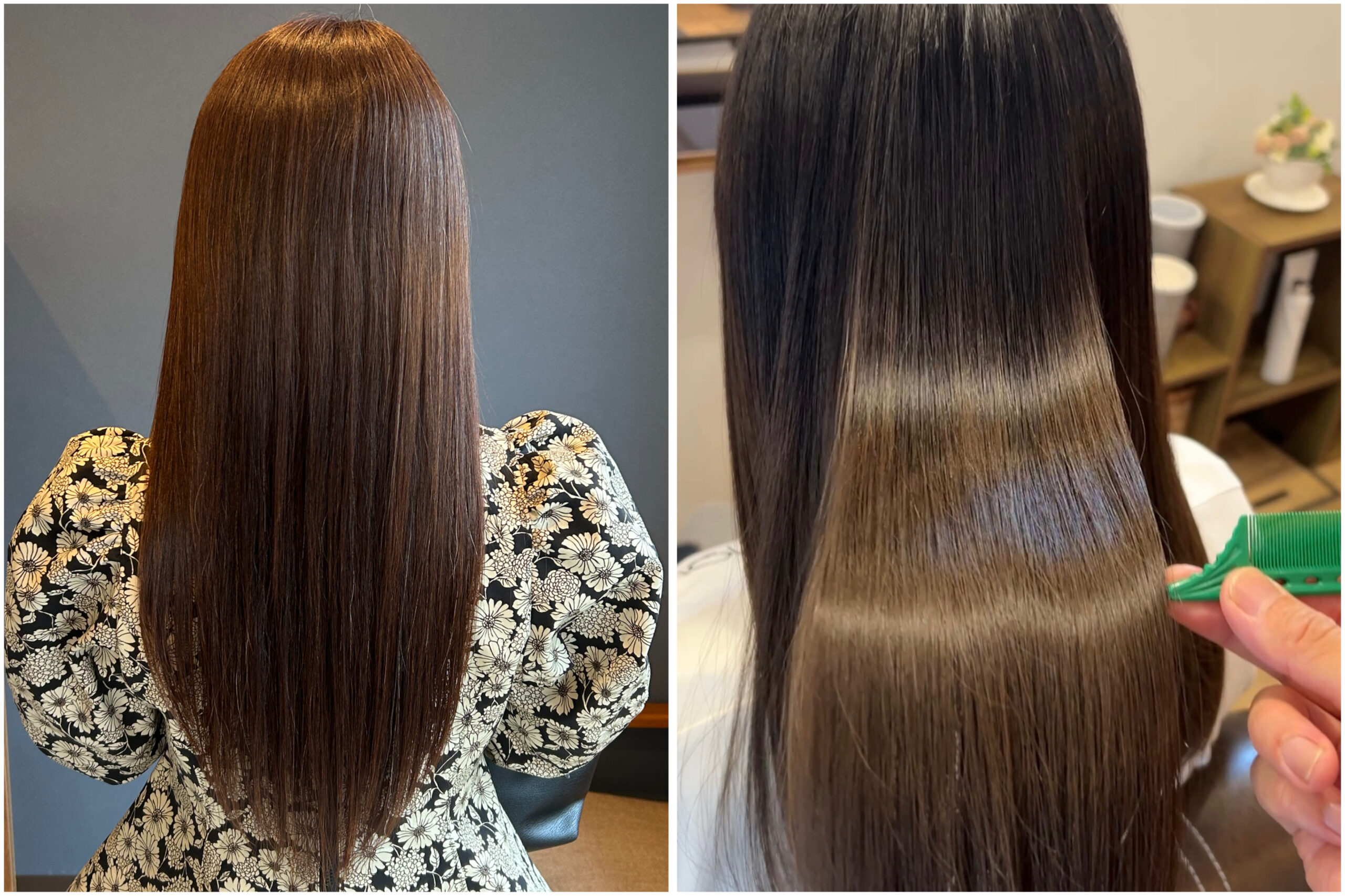 基本的に髪の毛のキューティクルは閉じているので中に栄養を入れていくのが難しいのですが、当店は特殊なキューティクルを開くトリートメントをご用意しているので通常のトリートメントよりも奥深くへ栄養を浸透させることができます。